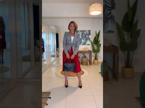 تنسيق القميص الأبيض مع التنورة الحمراء